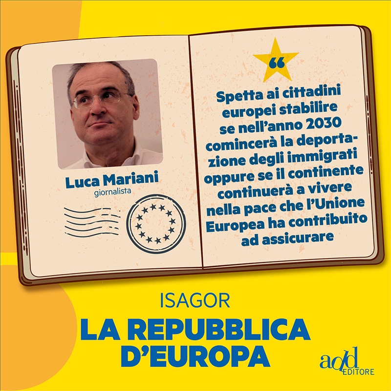 La Repubblica d’Europa è un libro-manifesto, edito da ADD, scritto da un collettivo di autori che ha scelto di firmarsi con un nome di fantasia, ISAGOR, perché in primo piano restasse l’idea e non l’identità.